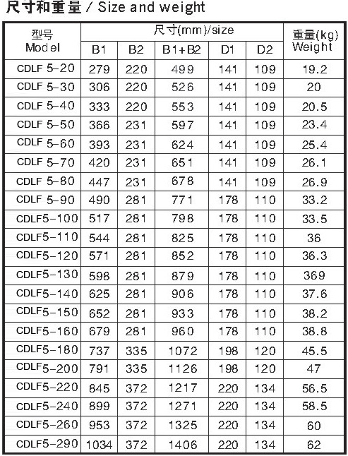 CDLF為安裝標準電機的非自吸立式多級離心泵,電機軸通過泵頭用聯(lián)軸器直接與泵軸聯(lián)接,拉桿螺栓將耐壓筒、過流部件固定在泵頭和進出水段之間,泵進出水口在泵底同一直線上;本泵可根據(jù)需要配置智能保護器,對泵干轉\缺相\過載等進行有效保護。