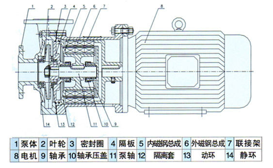 CQ型工程塑料磁力驅(qū)動泵(簡稱磁力泵),是應用現(xiàn)代磁學原理,將永磁聯(lián)軸器的工作原理用于離心泵的新型產(chǎn)品,磁力泵以靜密封取代動密封,使泵的過流部件處于完全密封狀態(tài),徹底解決了其它泵的機械密封無法避免的跑、冒、滴之弊病。磁力泵選用耐腐蝕、高強度的工程塑料、鋼玉陶瓷、不銹鋼作為制造材料,因此它具有良好的抗腐蝕性能,并可以使被輸送介質(zhì)免受污染。